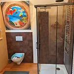 The accommodation includes a terrace and a sitting area, complete with a sofa set and modern conveniences such as a TV set with satellite channels. Beds fitted with hypoallergenic down pillows are at guests' disposal. At this apartment, a walk-in shower and a separate toilet have been provided to enhance your comfort. Moreover, there are a hair dryer, bath sheets, and slippers as well.